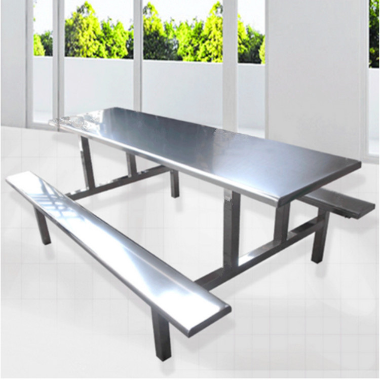 这张餐桌椅选用了品质可靠的304不锈钢材质,表面光滑平整。每天用餐结束后,保洁人员只需简单擦拭,就能让餐桌焕然一新。这种材质对潮湿环境也很适应,无论是在东南亚的雨季,还是在普通食堂的日常使用中,都能保持洁净如初的模样。